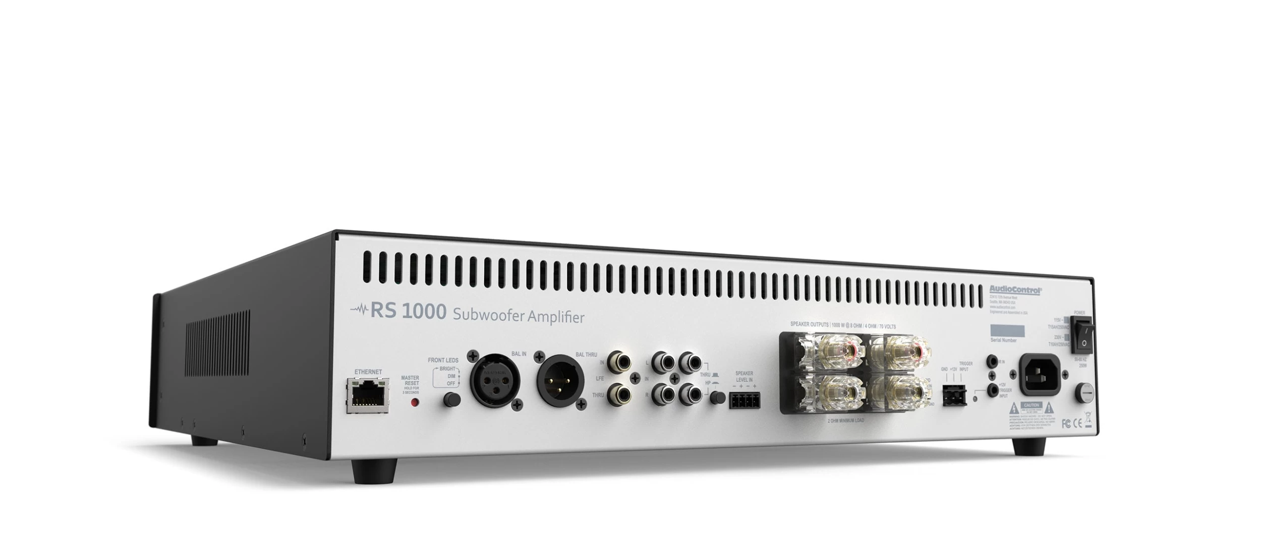 The AudioControl RS 1000 DSP controlled subwoofer amplifier is the ultimate bass amplification solution for any home cinema, multi-zone audio, or 2.1 channel music system.