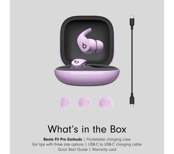These Beats Fit Pro earbuds are the perfect companion for your active lifestyle. Music, videos, and games feel super immersive thanks to Spatial Audio with dynamic head tracking – it adjusts the sound as you turn your head, giving you the feeling of being at a concert. The flexible secure-fit wingtips are flexible will stay put during even the most intense workouts. Dive into your favourite playlists and podcasts undisturbed with active noise-cancelling which blocks out your surroundings. And when you need to listen out for your platform announcement, switch to Transparency mode to let the outside world in.