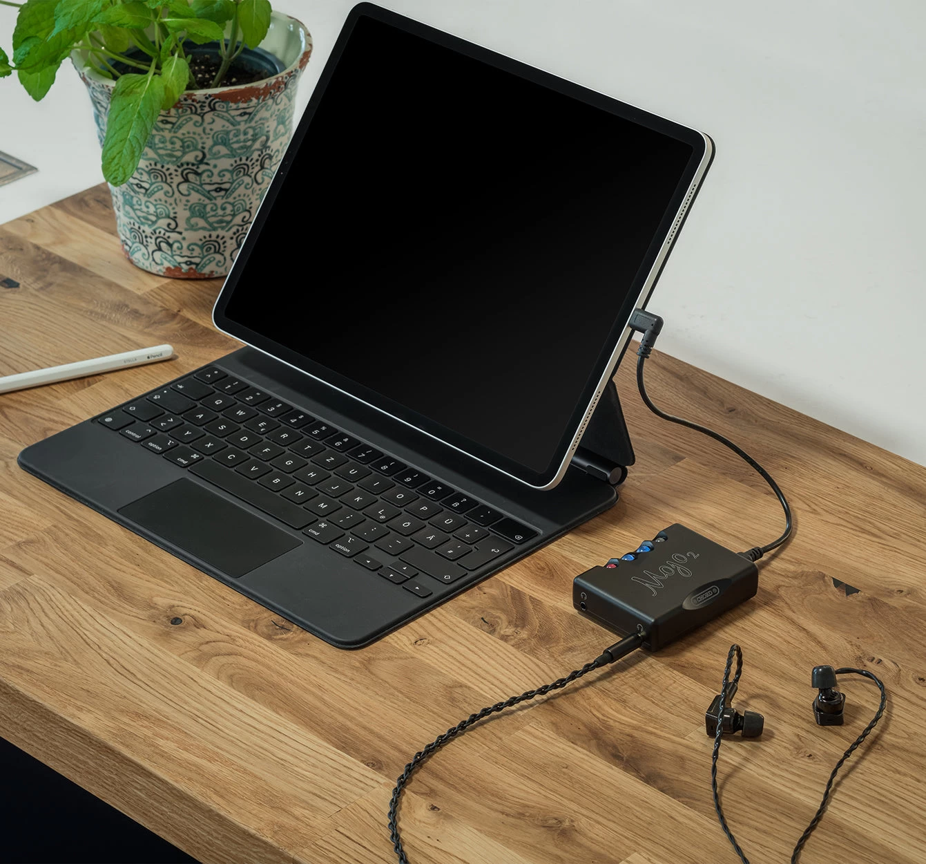 Next-generation FPGA-based portable DAC/headphone amplifier with advanced proprietary technology. Builds on the multi-award-winning Mojo and adds exciting new features plus improved performance. The class-leading custom-coded programmable chipset offers unrivaled technical performance and peerless sound quality. New menu feature with advanced UHD DSP, plus five digital inputs including USB-C. Wireless compatible via Poly.