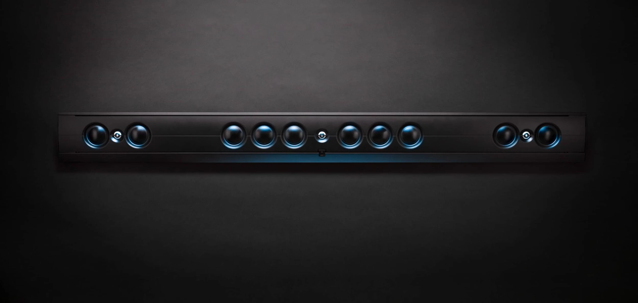 The Mythos 3C-85 three-channel passive sound bar elevates home theater experiences indoors and in covered outdoor areas. Combining the three front channels of a home theater system in a single cabinet, this ultra-slim, on-wall, three-way speaker blends high-performance sound and designer aesthetics in a weather-protected, adjustable-width rigid aluminum enclosure.