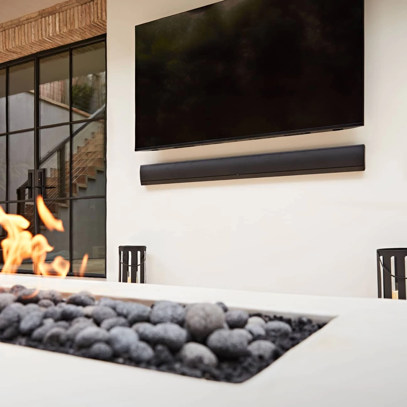 The Mythos 3C-85 ultra-slim, on-wall passive sound bar for 85” and larger-class TVs elevates your home theater experience with premium sound and designer aesthetics in an adjustable-width, weather-protected enclosure.