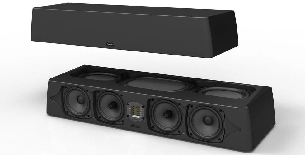 The top of the SuperCenter lineup is the reference-performance SuperCenter Reference, the perfect match for large GoldenEar home theater systems. Only 35” wide, it includes four 5-1/4″ drivers utilizing the focused-field magnet structure developed for the Triton Reference, the GoldenEar Reference high-gauss High Velocity Folded Ribbon tweeter and three planar passive radiators. Our unique linear-phase crossover network employs a fully balanced topology which reduces stray capacitances for dramatically improved clarity. It utilizes precision film capacitors and special internal wiring to perfectly blend the drivers for a seamless homogeneous sound.