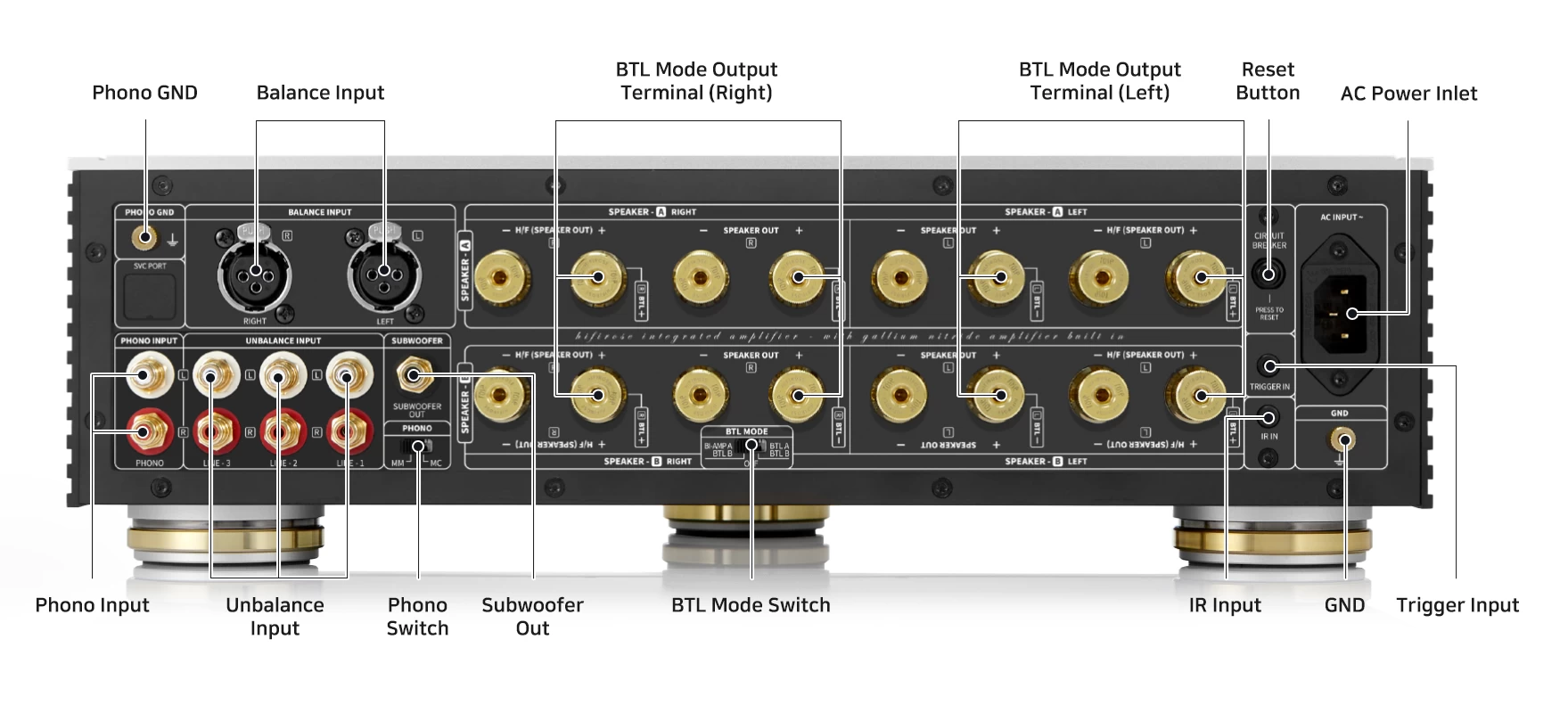 - Phono (MM/MC) Input: 5mV/0.5mV