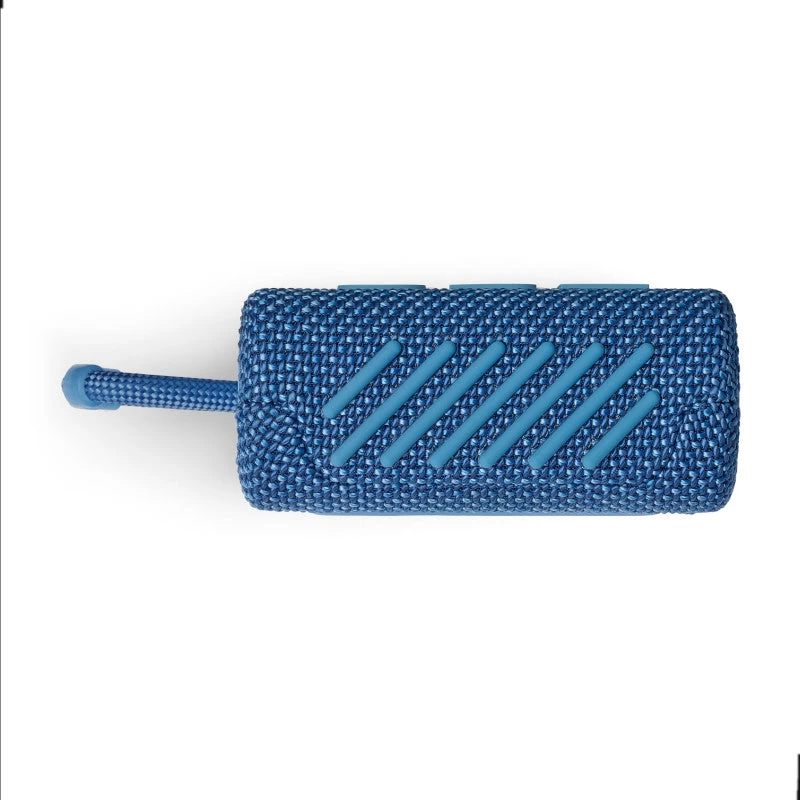 New innovative, eco-friendly design—same big audio performance. Help make the world a little greener with a must-have accessory for your next outing, made from up to 90% post-consumer recycled plastic and wrapped in 100% recycled fabric on the speaker grille. The JBL Go 3 Eco looks as vivid as it sounds with bold styling, expressive, edgy details, and rich JBL Original Pro Sound. The waterproof and dustproof design also features an integrated loop, so you can take your music anywhere, rain or shine, sustainably.
