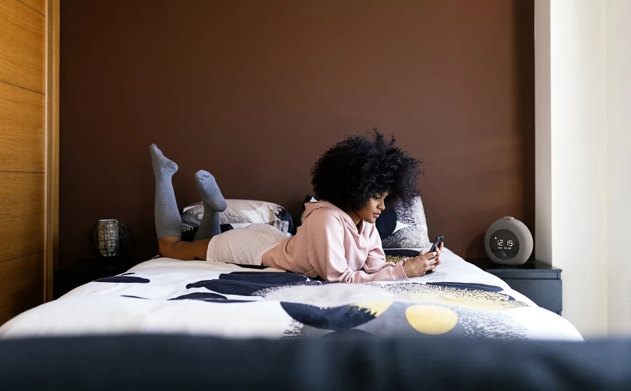 Personalize your alarm with multiple audio choices. Select your favorite radio station or one of built-in digital alarm tones. Set independent alarms for you and your partner.