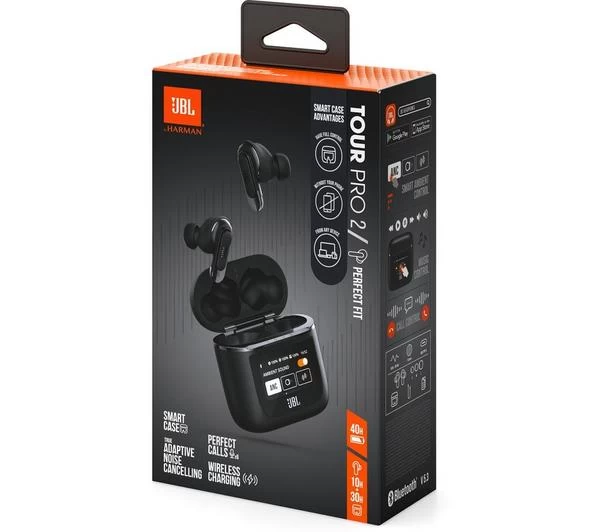 These JBL Tour Pro 2 earbuds use JBL’s Deep Bass Sound to give you high-quality audio with plenty of low-end thump. You’ll feel every beat of your perfectly curated playlists when you’re out and about. The smart charging case has a handy screen so you can take calls, skips tracks and crank the volume without taking your phone out of your pocket. And when you need a break from the hustle and bustle, True Adaptive Noise Cancelling uses 4 noise-sensing mics to shut out the world around you. The rush hour commute has never sounded so good.