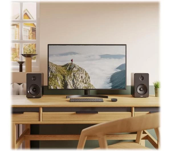 Containing their own amplifier, the D40 speakers offer you a big room-filling sound with deep bass and fine trebles. And thanks to the remote control, you can play, pause or skip any track.
