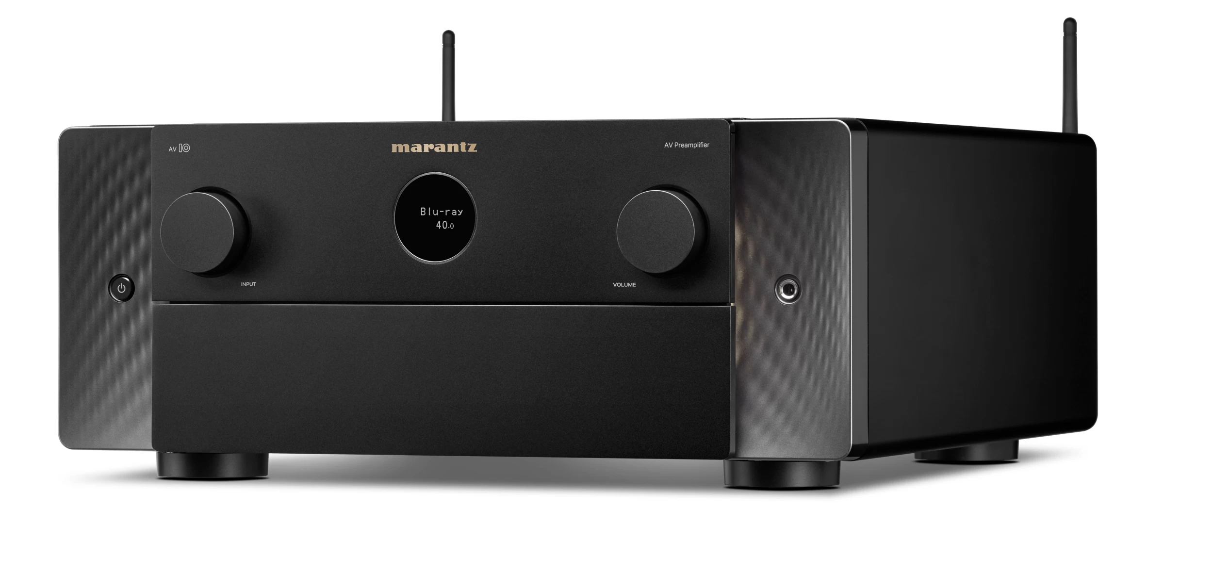 - Exquisite Design: A modern expression of timeless design principles, AV 10 features the iconic Marantz porthole, premium materials, and subtle sidelights that illuminate the front panel.