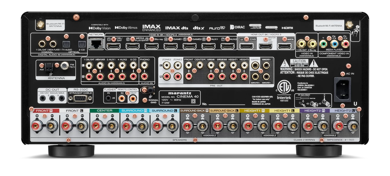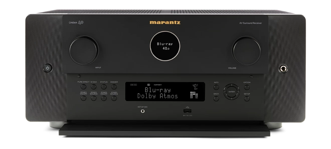 - Exquisite Design: A modern expression of timeless design principles, CINEMA 40 features the iconic Marantz porthole, premium materials, and subtle sidelights that illuminate the front panel.