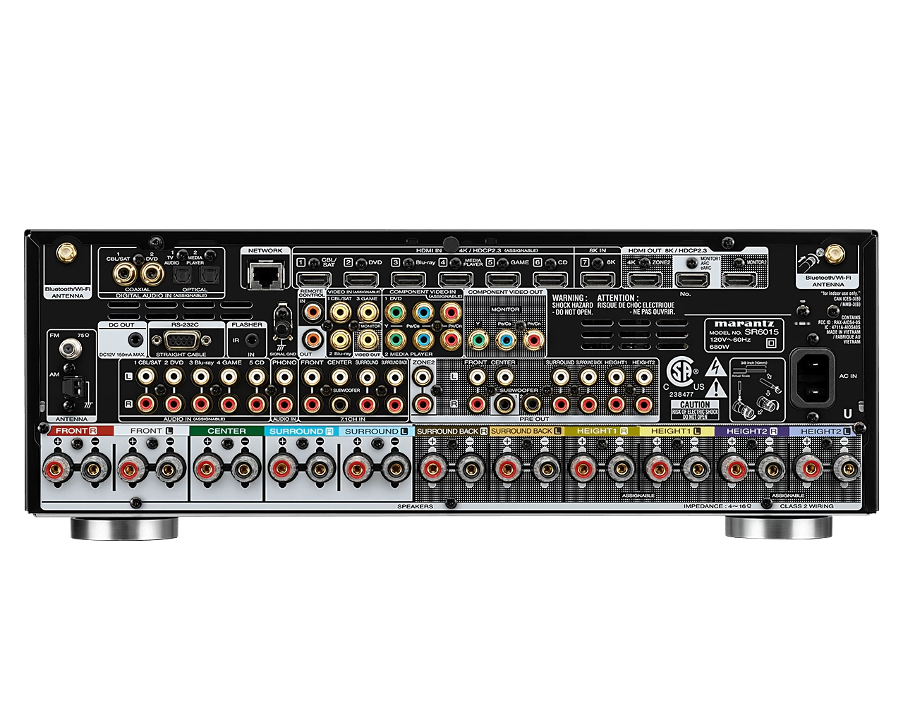Drive exquisitely detailed home cinema with the 9.2 channel 8K UHD AV receiver. Delight in the most musical sound for any source — from home theater, to vinyl, to digital streaming. Whether you’re watching classic film noir or hosting dinner with friends, it’s the perfect sonic accoutrement. Totally immerse yourself in movies and TV with elevated, high-resolution surround sound formatting from Dolby Atmos®, Dolby Atmos Height Virtualization Technology, DTS:X®, DTS Virtual:X™ and IMAX® Enhanced. Stream music from leading services and control the SR6015 with voice control compatibility via Amazon Alexa, Google Assistant, Apple Siri and Josh.ai.