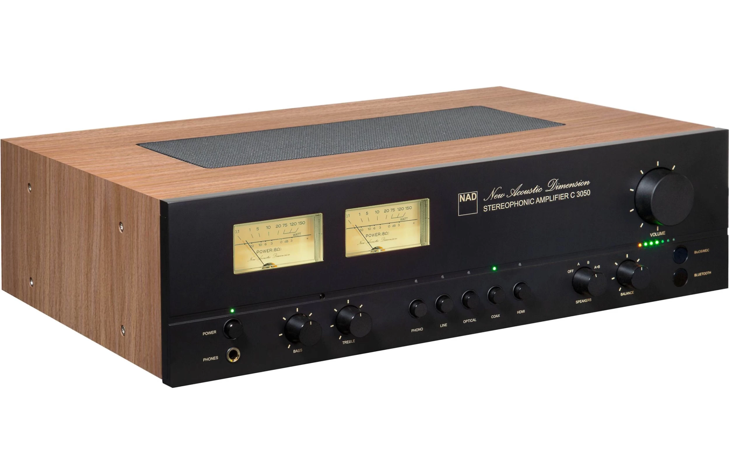 In the C 3050 Stereophonic Amplifier, NAD’s 50-year history of innovation meets the future of hi-fi. With its dual VU meters, push-button input selectors, walnut-finished vinyl-clad cabinet, and 1970s cursive-style branding, the C 3050 recalls the components that helped a generation of music-lovers discover the joys of great audio. With its 100-watt-per-channel HybridDigital UcD amplifier and Texas Instruments high-resolution differential DAC, the C 3050 delivers sound that will thrill today’s discerning listeners. And thanks to NAD’s MDC2 future-proofing technology, C 3050 owners can add leading-edge capabilities like BluOS high-resolution multi-room streaming and Dirac Live room correction.