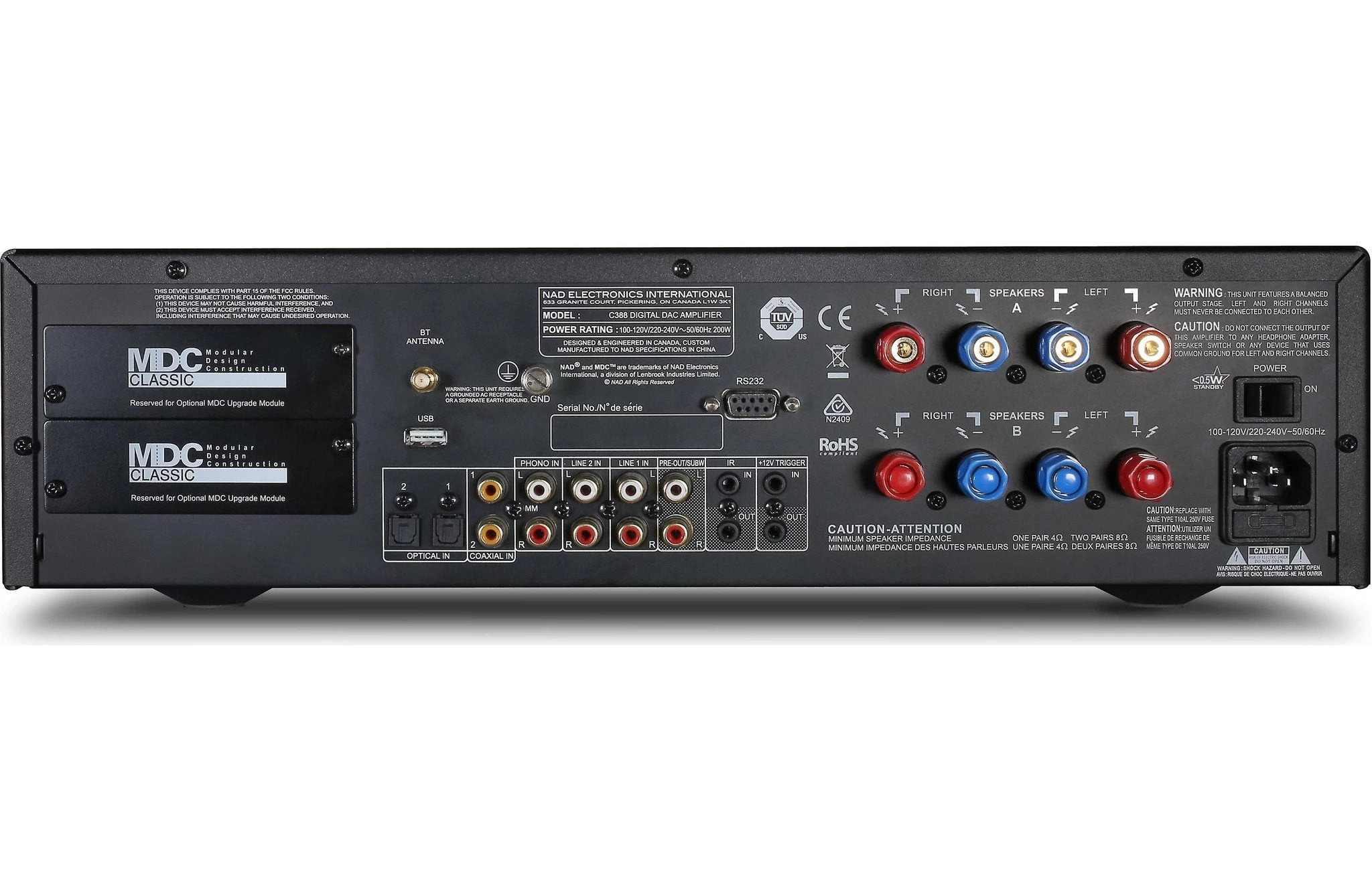 NAD’s C 388 Hybrid Digital DAC Amplifier fills your room with detailed, virtually distortion-free sound and brings out the best in your music. Connect digital or analog music sources, and stream music via Bluetooth from your computer or compatible mobile device—or stream audio from connected sources to a pair of Bluetooth headphones.