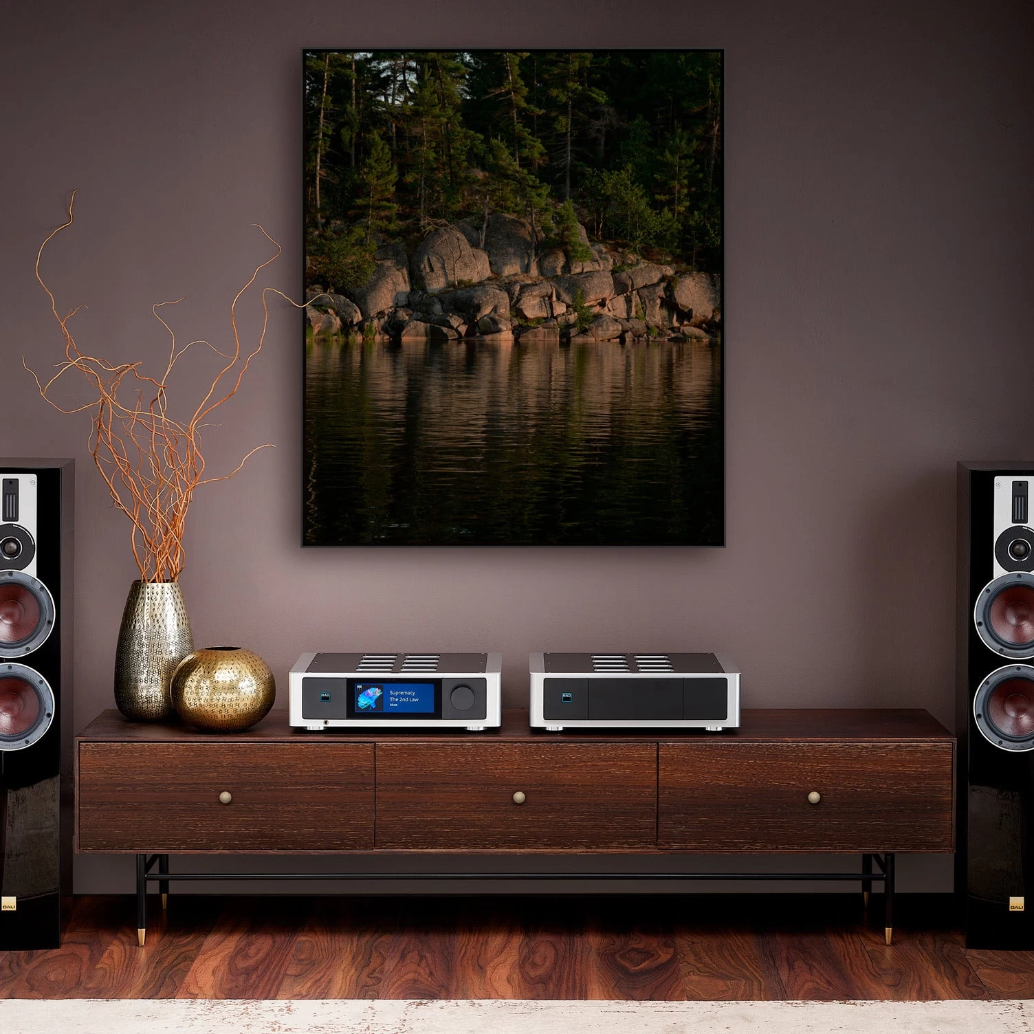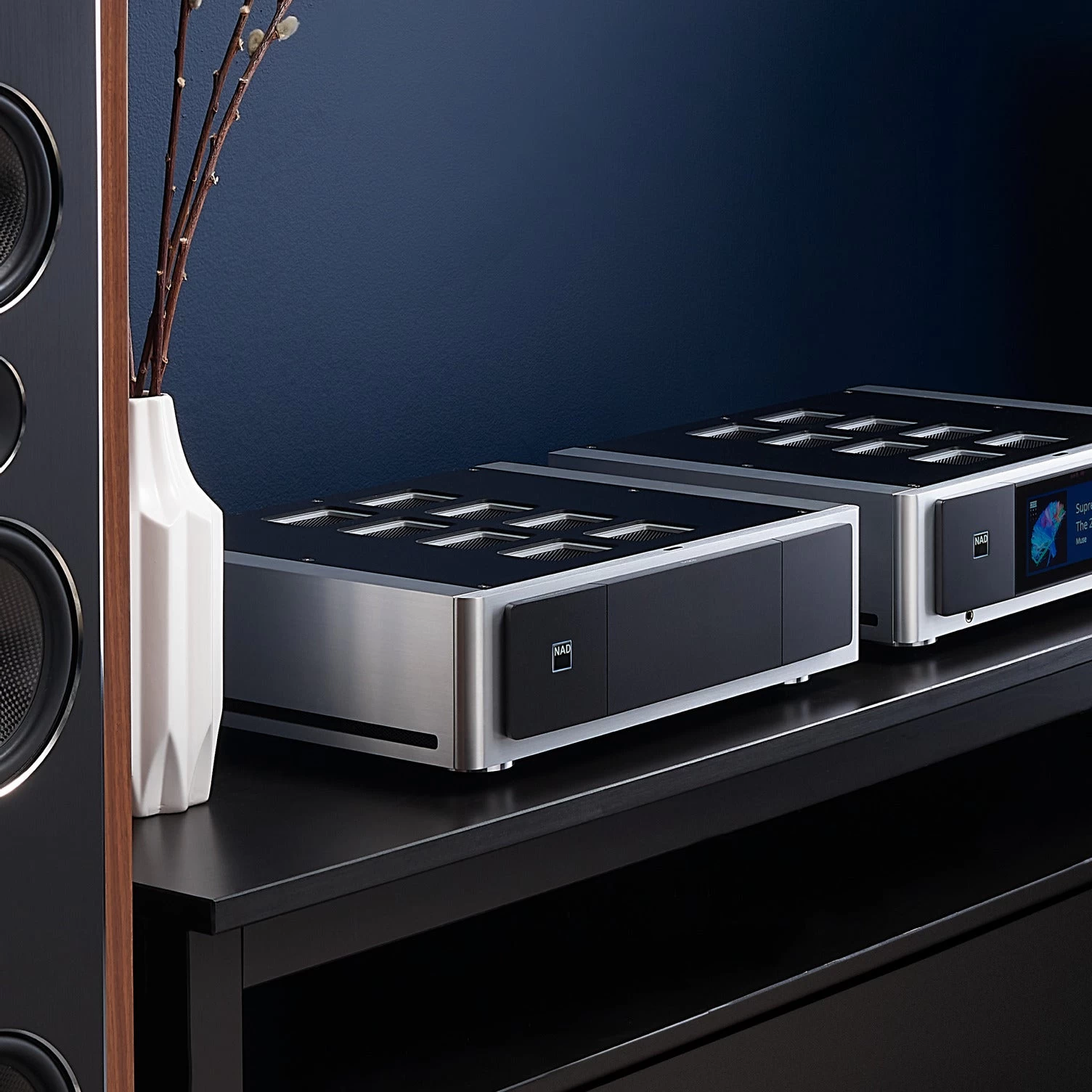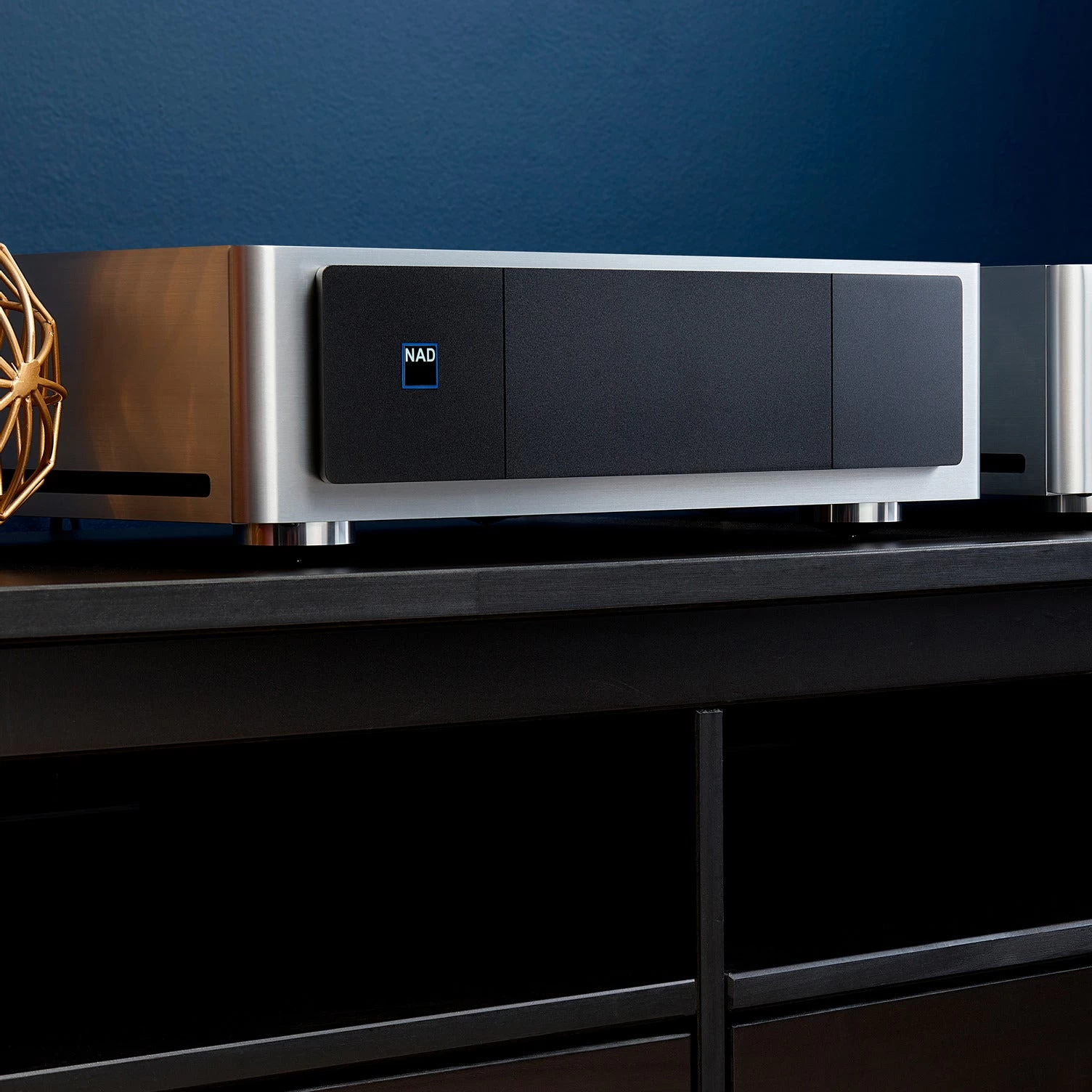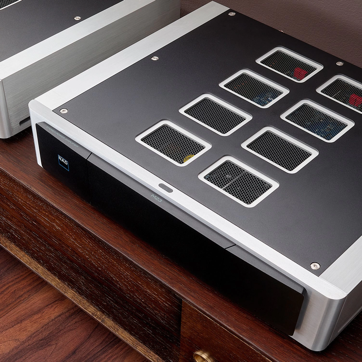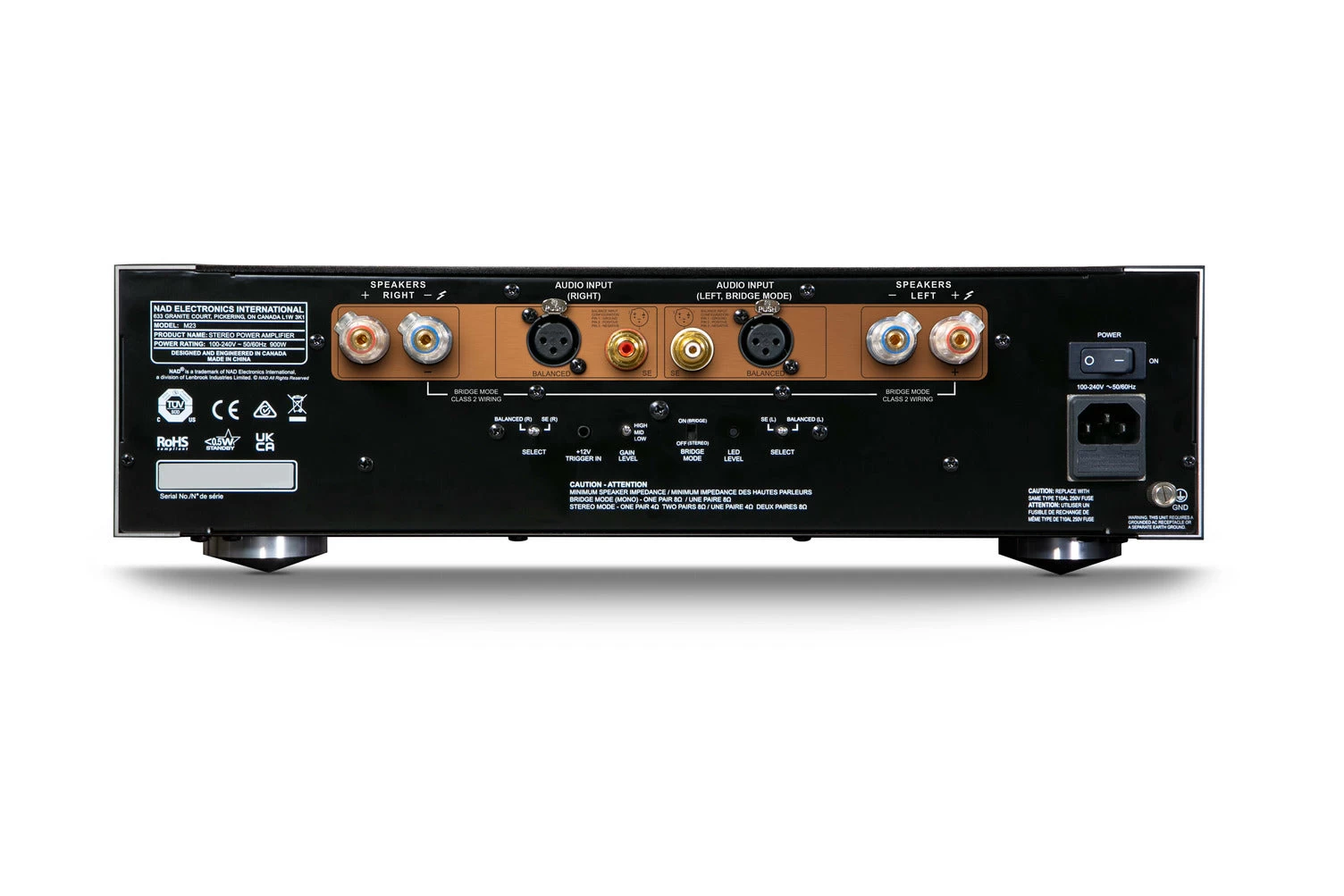 Easily integrate the NAD Masters M23 Stereo Power Amplifier into a high-performance separate system with its single-ended RCA, balanced XLR auto-sensing inputs, three-position gain-control switch, and 12V trigger input. The M23 can operate in bridged mode, delivering 700W continuous power into 8 ohms. Two M23 amplifiers operating in bridged mode can be paired together, or listeners can combine the M23 with NAD’s award-winning Masters M33 BluOS Streaming Amplifier, both operating in bridged mode, to configure a staggeringly powerful system with 700Wpc continuous output.