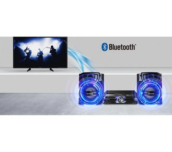 Get the party started. Bass is fired from the Panasonic SC-AKX710E-K Bluetooth Megasound Party Hi-Fi System with such power that you can feel it. The Super Woofer ensures that no resonance sounds are lost, so the music sounds crisp and clear even as it shakes the air with killer bass lines.