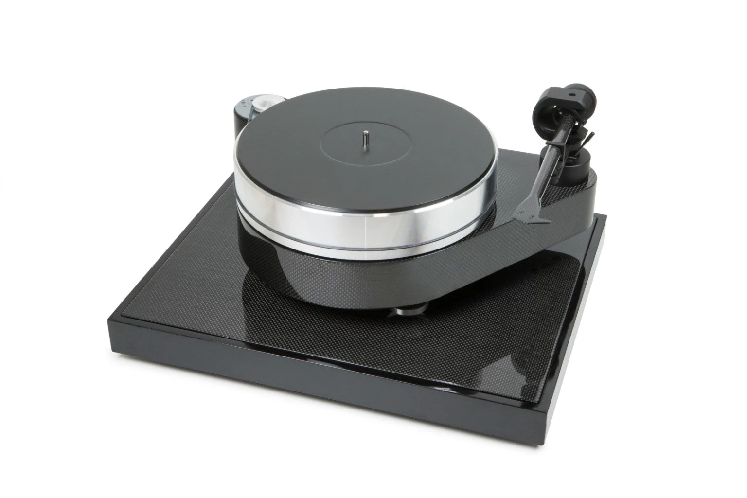 The RPM 10 Carbon uses a new extra heavy chassis which features a special CNC machined MDF plate that incorporates hard resin coated steel pellets to form an extra heavy precise sandwich construction. A special complex heat treatment and a carbon surface coating ensures superior low resonance levels. The mass-loaded chassis is effectively decoupled from its surface via the included Ground it Carbon and its magnetic feet. With two magnets located in the feet, the turntable is practically floating. The studs in the feet are only used for keeping them centered. Due to this unique feature the turntable is perfectly decoupled from the surface it is placed on. Combined with a new special polished aluminium platter with internal TPE damping and a vinyl layer on top, the inverted ceramic main bearing delivers an absolute stable turntable speed with extra low rumble. The extra heavy outboard motor unit is equipped with a precise motor control and features a built-in switch between 33 & 45 rpm. Last but not least the non-compromise 10“ Evo tonearm with conical carbon-fibre armtube and inverted bearing design ensures perfect tracking, even with demanding cartridges. Highly flexible top-grade copper internal wiring. Delivered with topgrade 5P phono cable „Connect it CC“ with RCA plugs (XLR as an option).