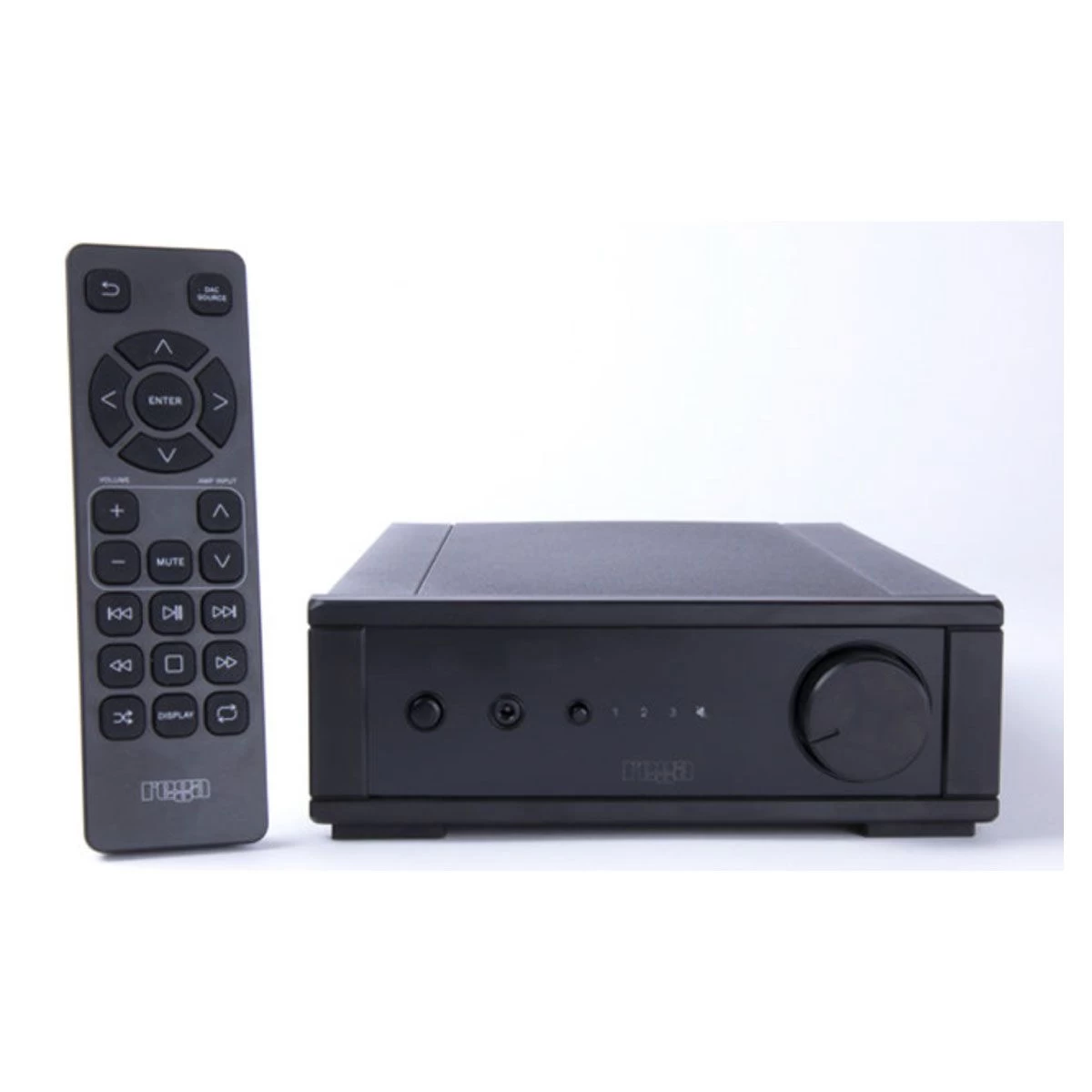 Two line level inputs and a high quality moving magnet phono input are available as sources. There is a headphone output provided on the front of the unit for powering standard hi-fi headphones; this is driven from the power amplifier stage of the unit through relays to avoid signal degradation when headphones are inserted or the product is muted. A new remote handset is included as well.
