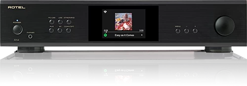 The front panel color display presents album artwork, track, and title information and simplifies the setup and configuration process using the included remote control. The S14 connects to both hard-wired and dual-band Wi-Fi networks for installation flexibility. This just-add-speakers solution continues to deliver on the promise of quality, performance, and value synonymous with Rotel.