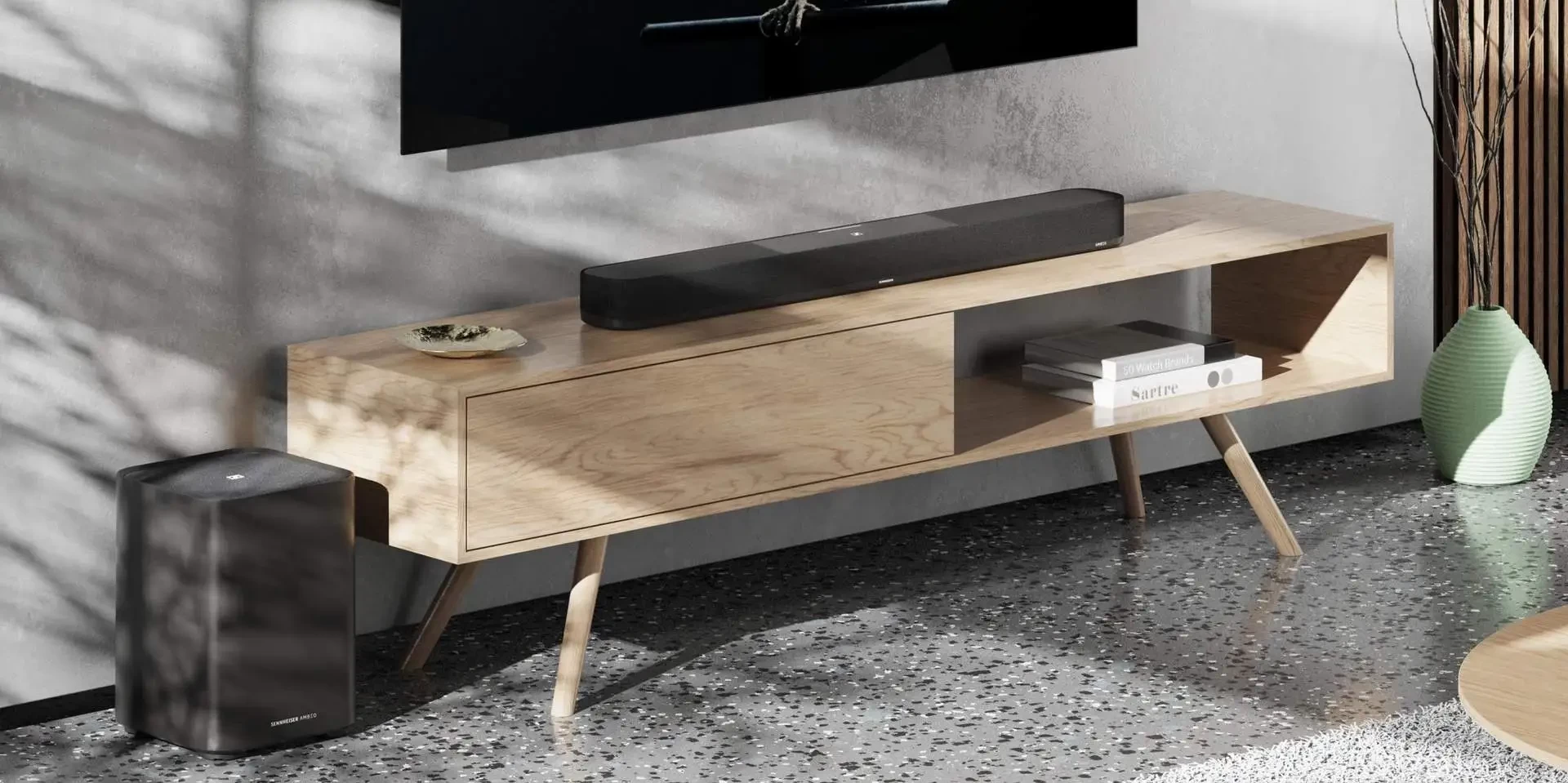 - State-of-the-Art -AMBEO- virtualization technology, co-developed with the Fraunhofer IIS Institute, delivers extremely deep bass.