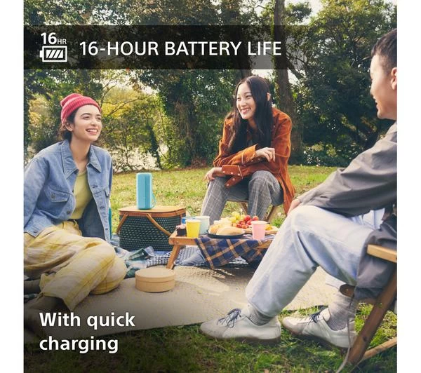 Life could be a party with the Sony XE200 speaker. It’s small enough, so you can take it anywhere, but it pumps out big, room-filling sound. The Line-Shape Diffuser helps the sound reach further without distortion – great for big venues. And thanks to the X-Balanced speakers and passive radiators you can enjoy clear sound with a wide sound stage and deep bass. It’ll survive water, dust and falls, so it can keep playing no matter what happens.