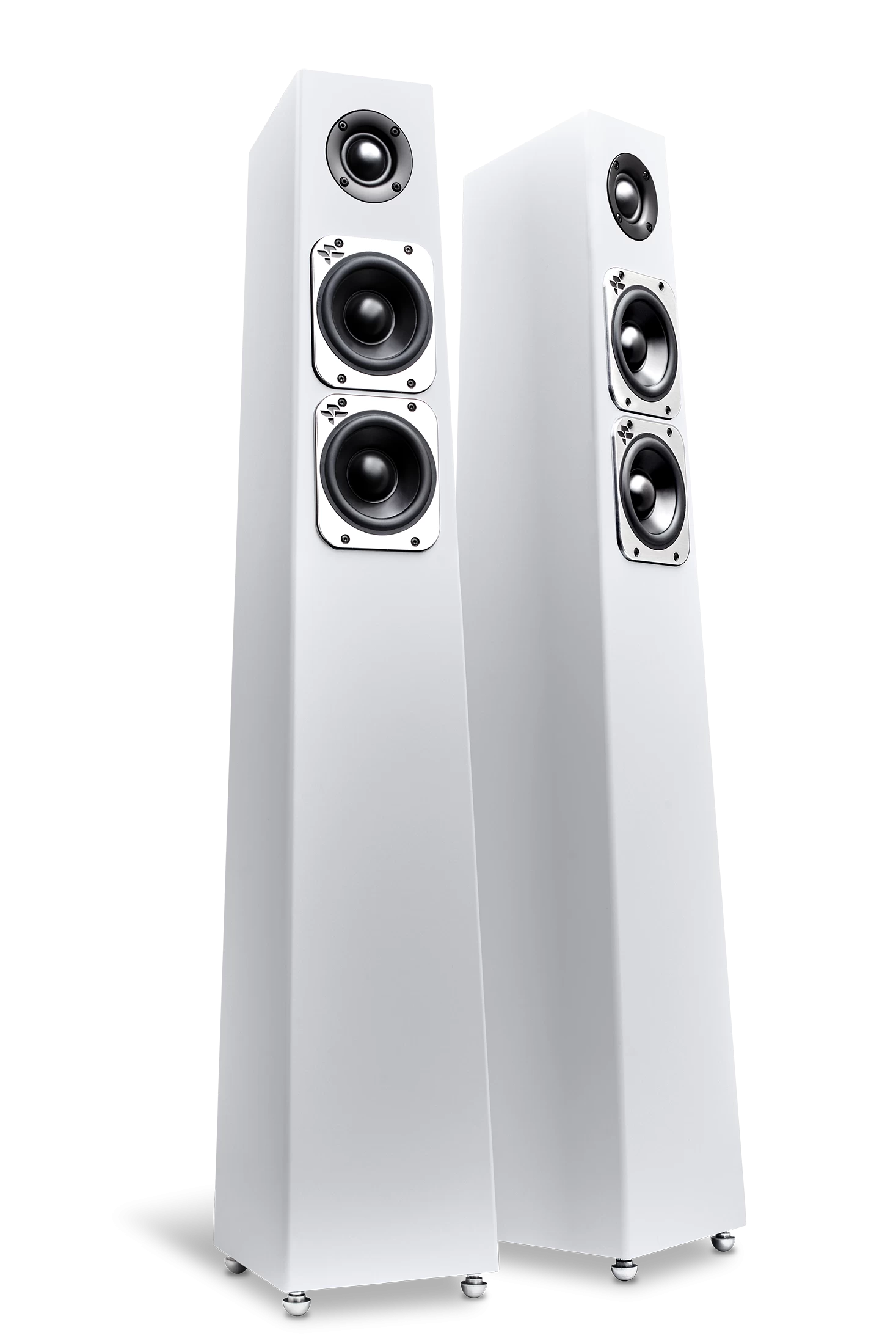 They musically energize a room and bring every sound to vivid, three-dimensional life, from the subtlest whisper to complex symphonies. Satin Black and White finishes are equipped with twin pairs of gold plated terminals while premium Dusk and Ice multi coat polyester paint finishes have Bi-Wireable WBT connectors and annealed aluminum terminal plates.
