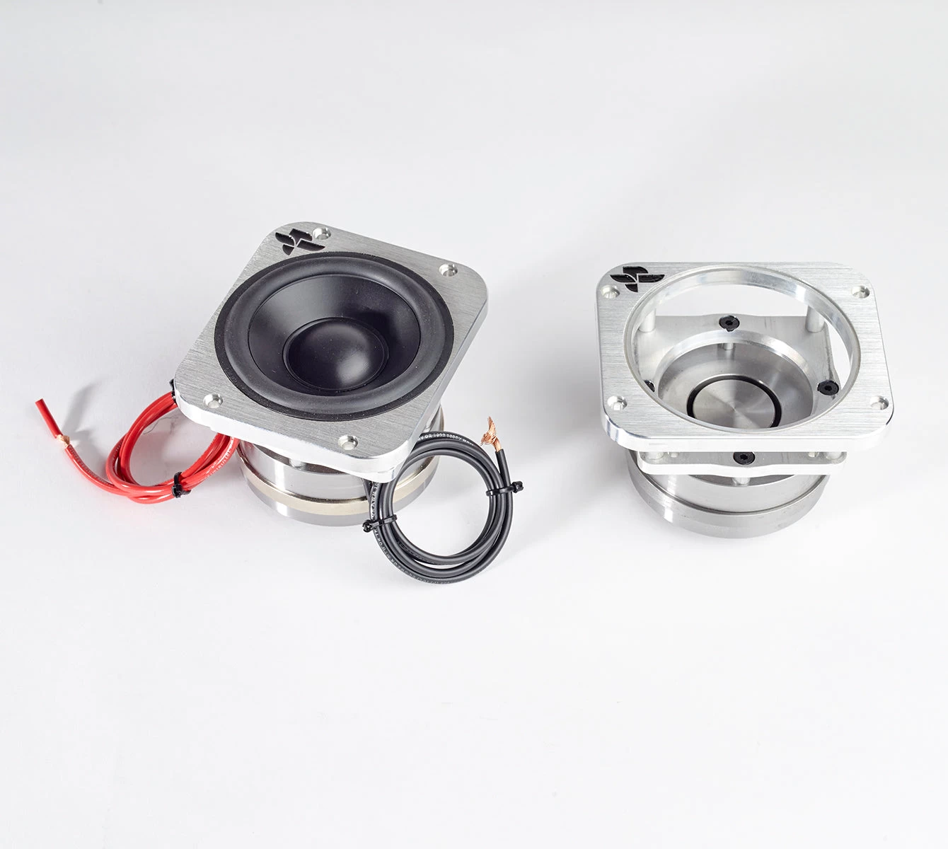 - Tweeter: 1.3″ / 3.3 cm Laser Etched Textile Soft Dome with 1/2″ thick metal faceplate