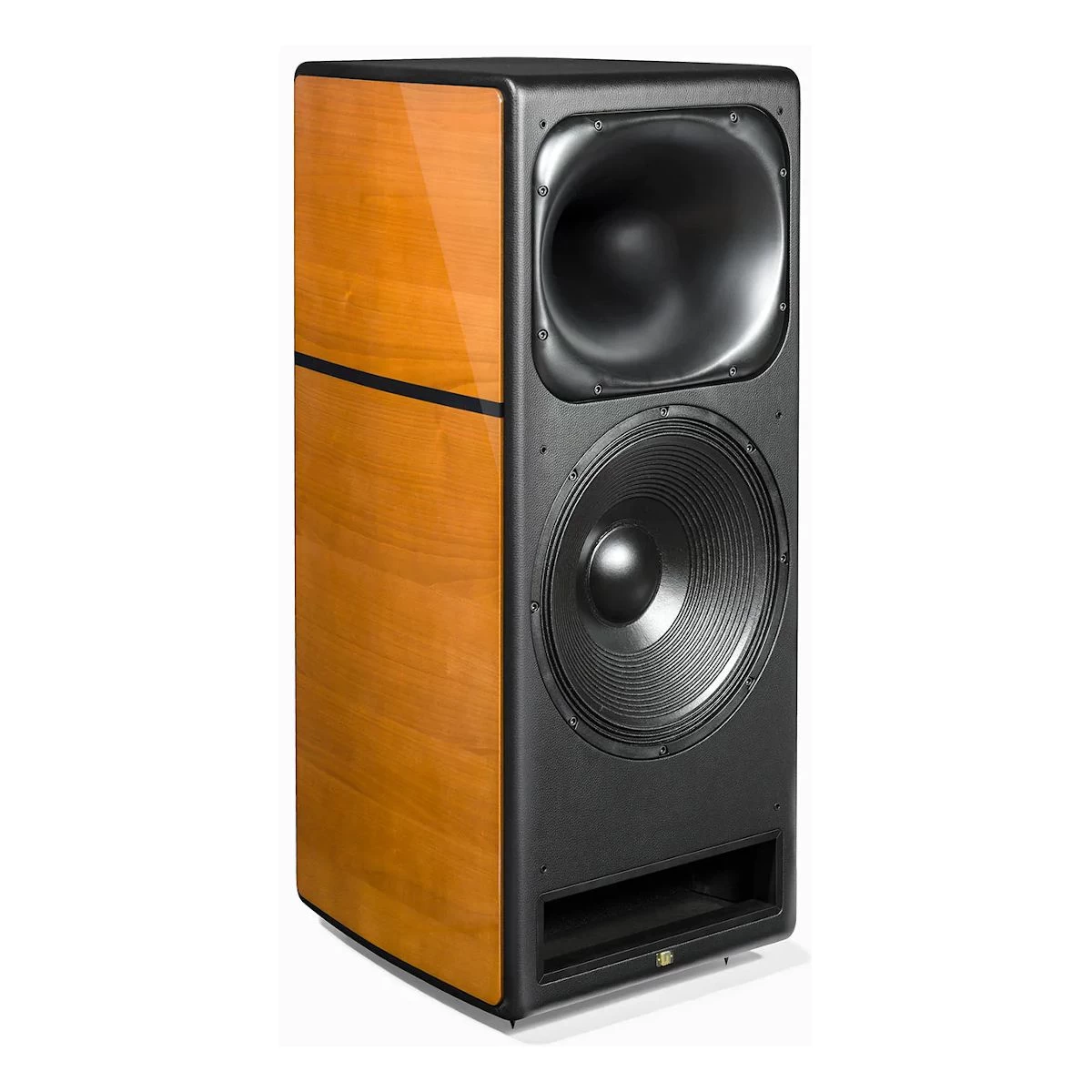 The 15″ woofer (Italian production) is equipped with a diaphragm made from a dough of vegetable and carbon fibers, the moving coil has a diameter of 100 mm, it has two layers (one internal and one external) with an aluminum former. There are also two metal rings that control of the variation of the magnetic flux to reduce the harmonic and intermodulation distortion to a widely inaudible level.